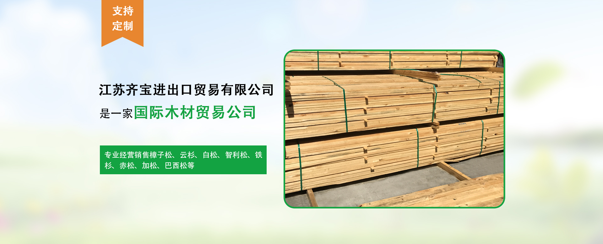 江蘇齊寶進出口貿(mào)易有限公司是成立于2011年位于太倉港區(qū)的一家國際木材貿(mào)易公司,專業(yè)經(jīng)營銷售樟子松,云杉,白松,智利松,鐵杉,赤松,加松,巴西松等,目前我公司進貨量約200000m3/年...